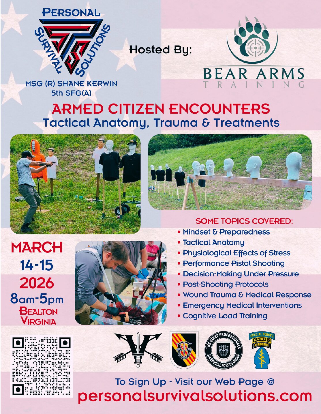 Tactical Anatomy & Treatments (Personal Survival Solutions)- March 14-15th, 2026